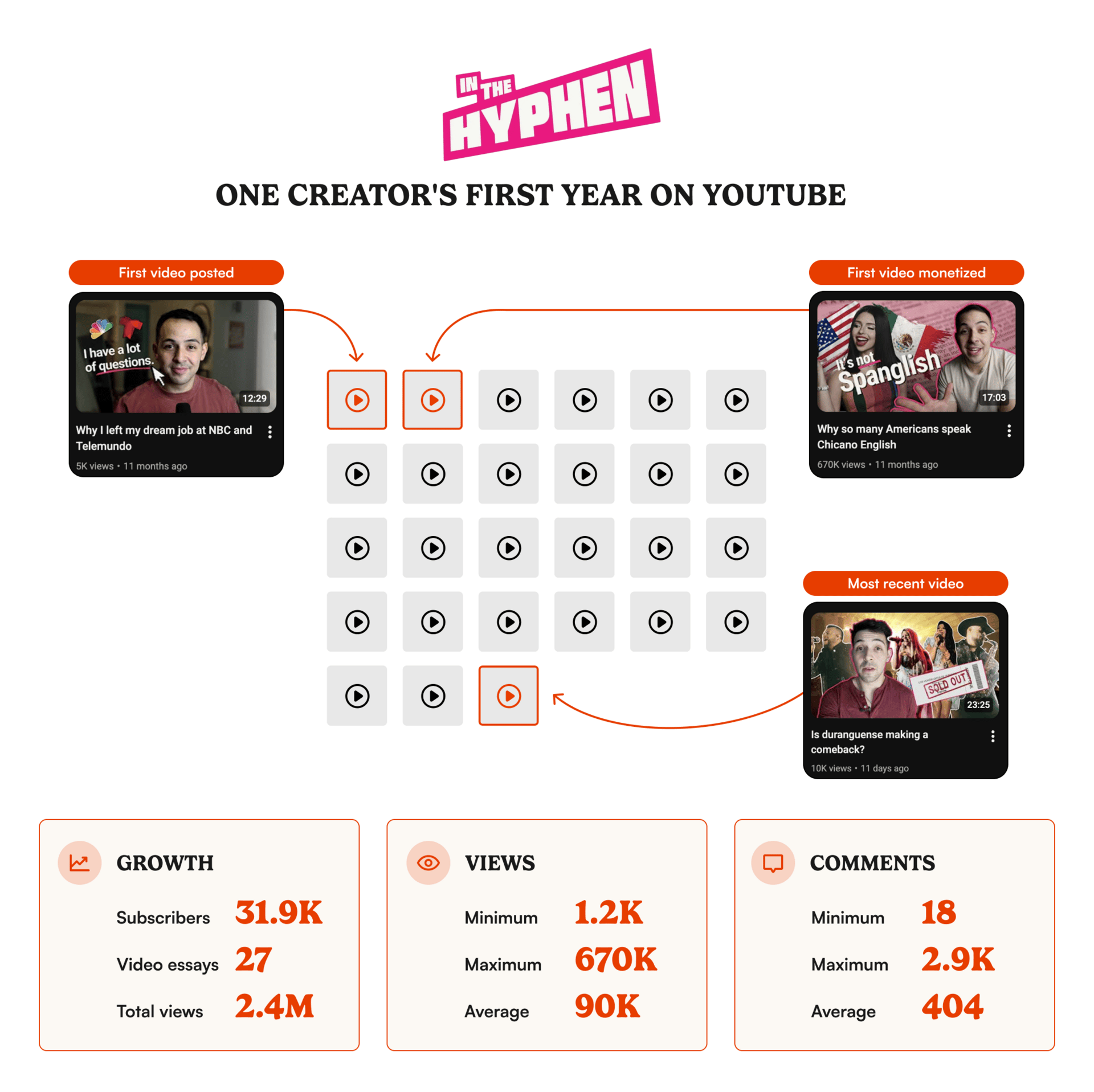 That $9,000 debt? Cleared with time to spare. In the Hyphen year two, he told us, will be about creative ambition: more investment in production, travel for stories in Mexico and Latin America, and a newsletter to capture reporting that doesn't make it into video.